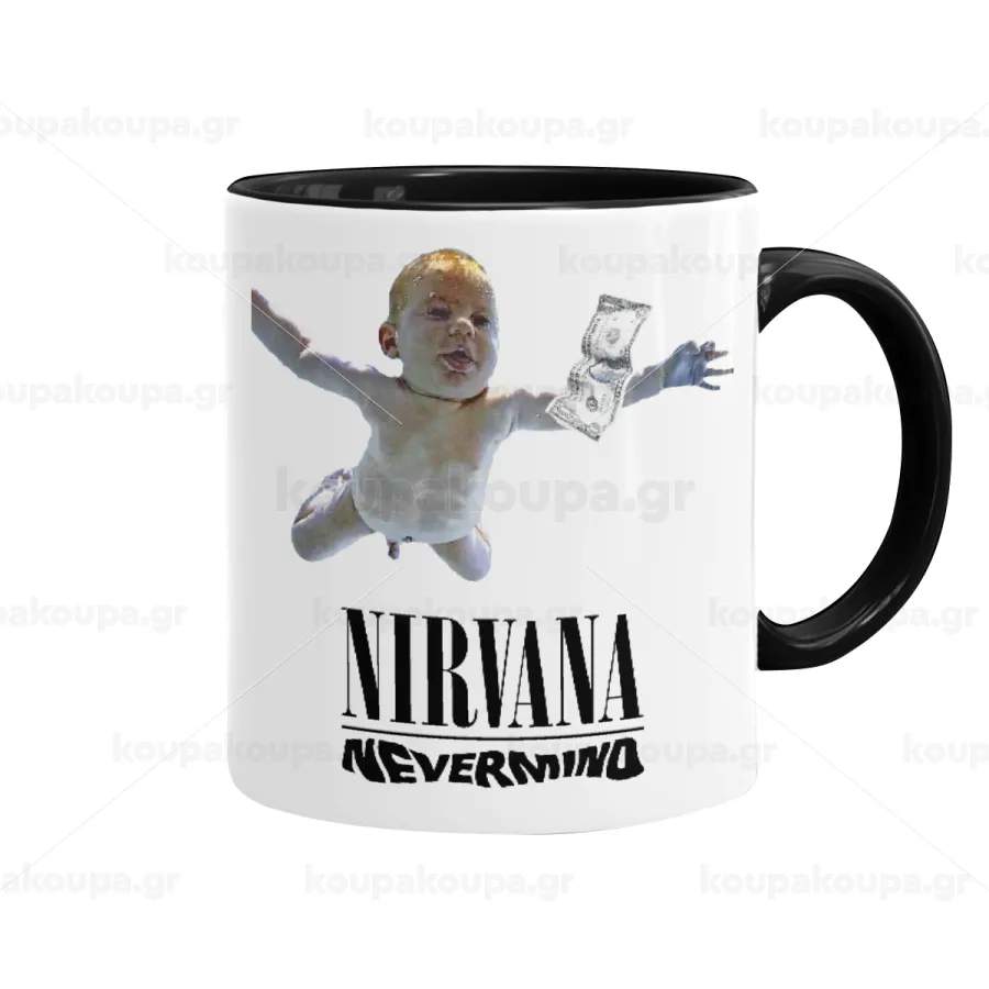 Nirvana nevermind, Κούπα χρωματιστή μαύρη, κεραμική, 330ml