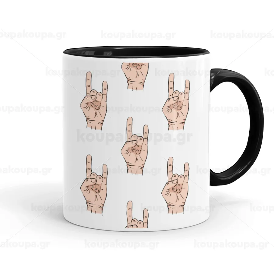 Rock hands, Κούπα χρωματιστή μαύρη, κεραμική, 330ml