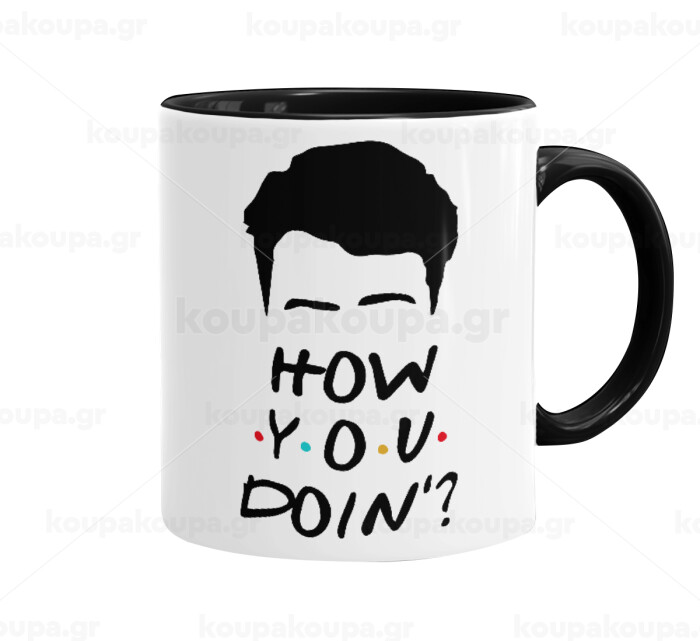 Friends how you doin?, Κούπα χρωματιστή μαύρη, κεραμική, 330ml