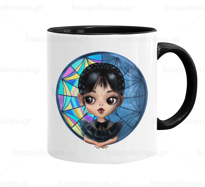 Wednesday big eyes, Κούπα χρωματιστή μαύρη, κεραμική, 330ml