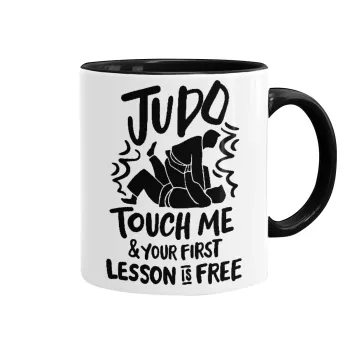 Judo Touch Me And Your First Lesson Is Free, Κούπα χρωματιστή μαύρη, κεραμική, 330ml