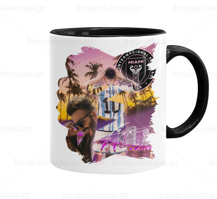 Lionel Messi Miami, Κούπα χρωματιστή μαύρη, κεραμική, 330ml