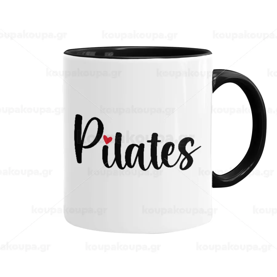Pilates love, Κούπα χρωματιστή μαύρη, κεραμική, 330ml