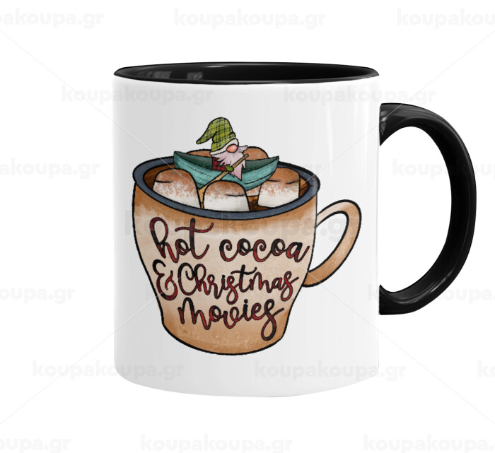 Hot Cocoa And Christmas Movies, Κούπα χρωματιστή μαύρη, κεραμική, 330ml