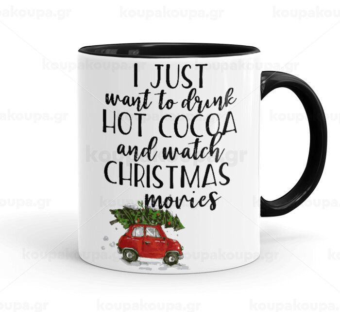 I just want to drink hot cocoa and watch christmas movies mini cooper, Κούπα χρωματιστή μαύρη, κεραμική, 330ml