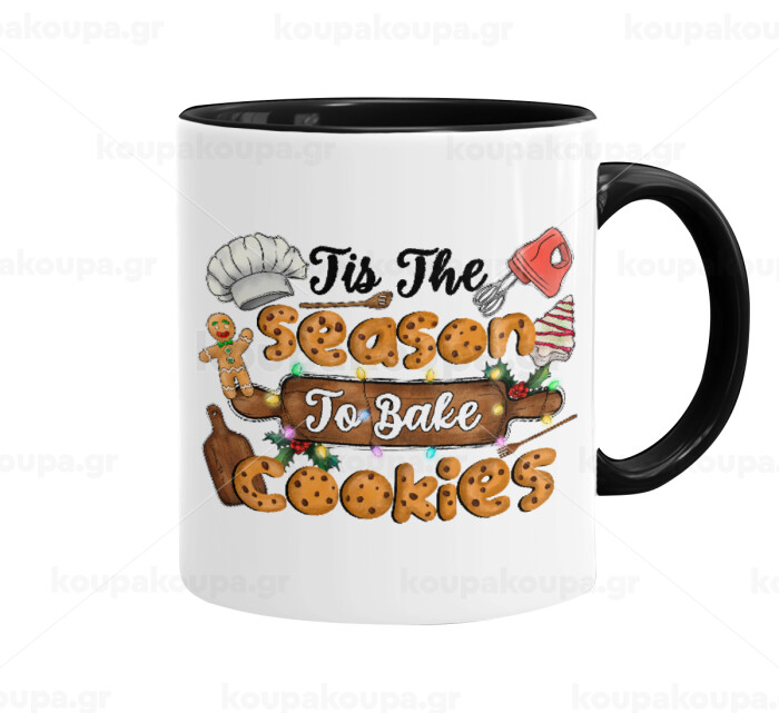Tis The Season To Bake Cookies, Κούπα χρωματιστή μαύρη, κεραμική, 330ml