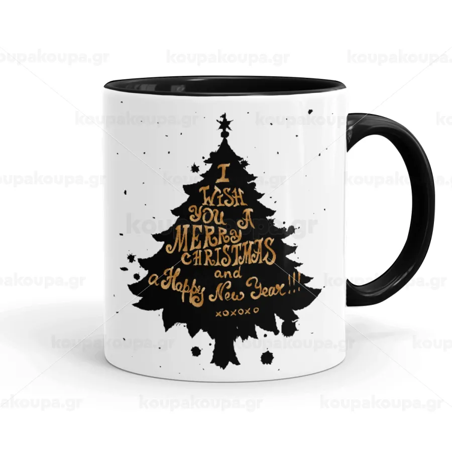 Tree, i wish you a merry christmas and a Happy New Year!!! xoxoxo, Κούπα χρωματιστή μαύρη, κεραμική, 330ml