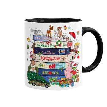 Xmas Classic movies, Κούπα χρωματιστή μαύρη, κεραμική, 330ml