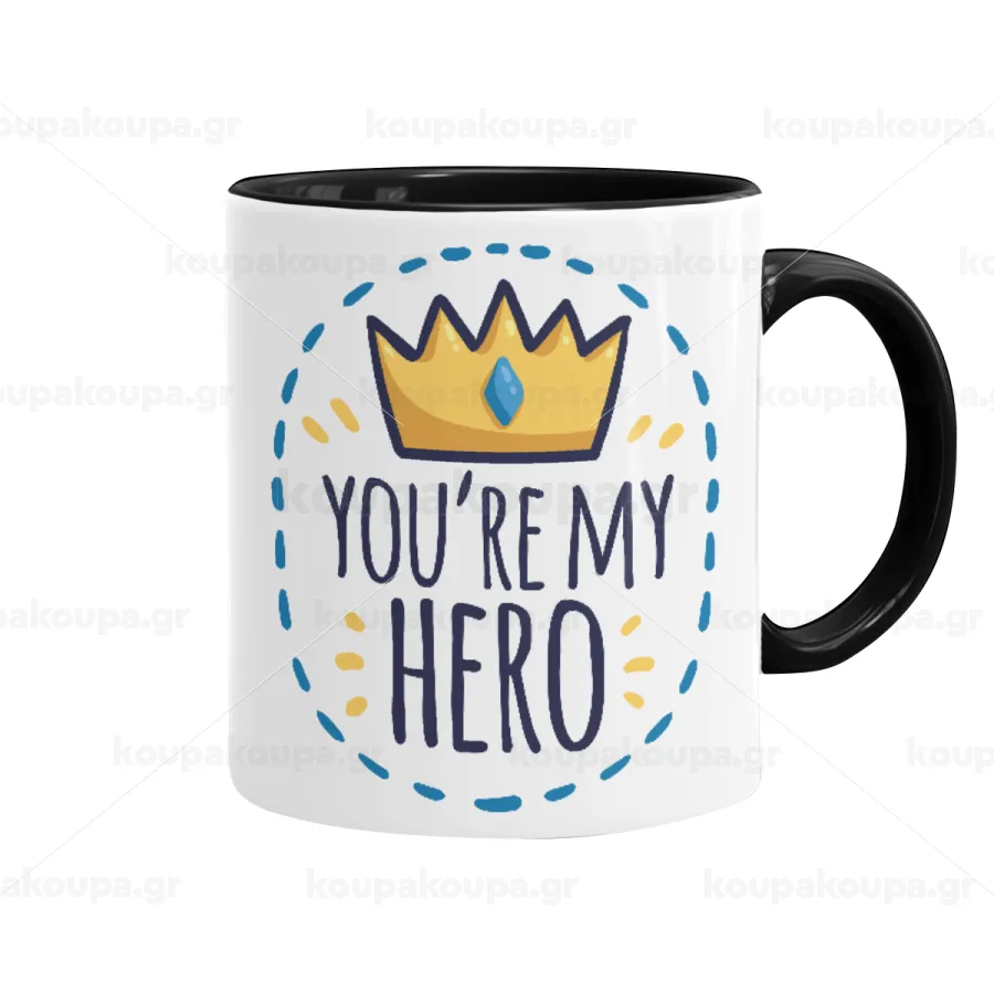 Dad, you are my hero!, Κούπα χρωματιστή μαύρη, κεραμική, 330ml