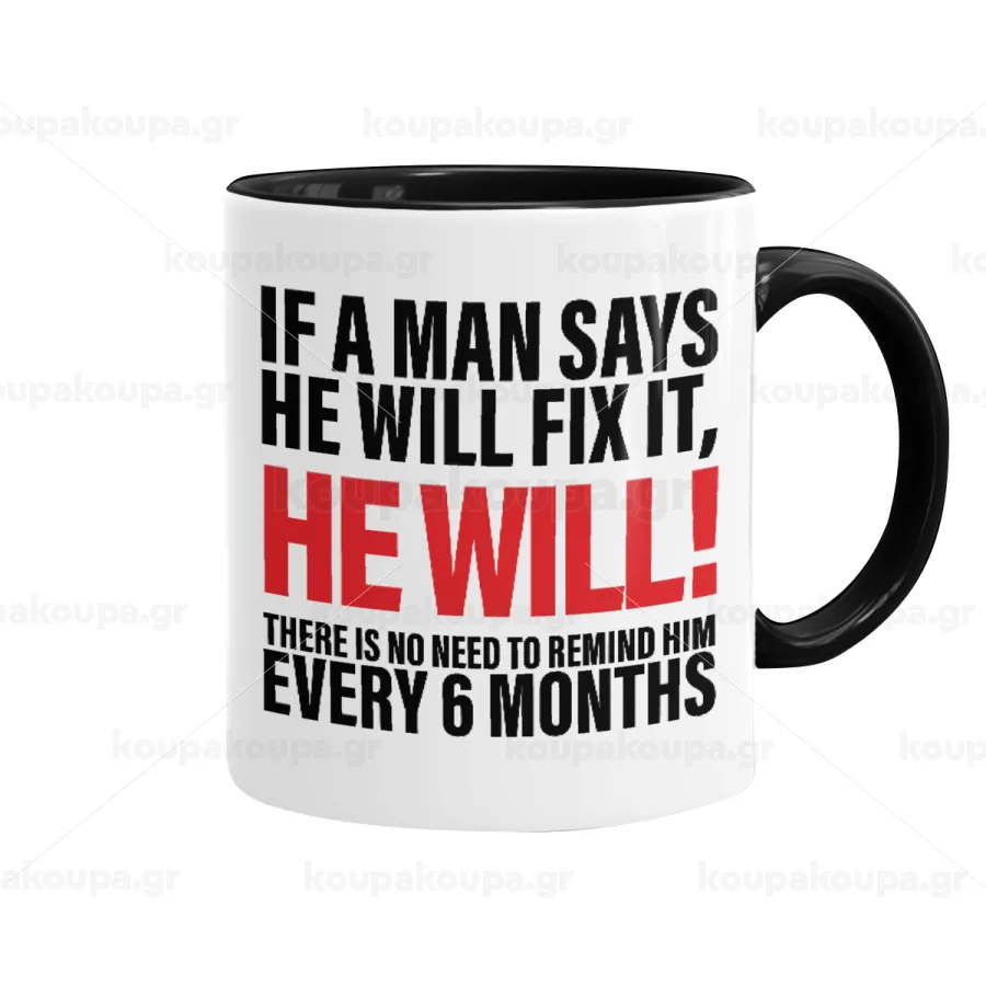 If a man says he will fix it He will There is no need to remind him every 6 months, Κούπα χρωματιστή μαύρη, κεραμική, 330ml