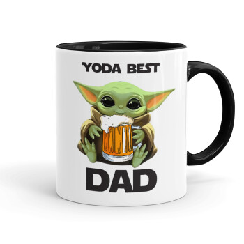 Yoda Best Dad, Κούπα χρωματιστή μαύρη, κεραμική, 330ml