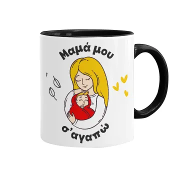 Μανούλα σ'αγαπώ αγκαλιά!, Κούπα χρωματιστή μαύρη, κεραμική, 330ml