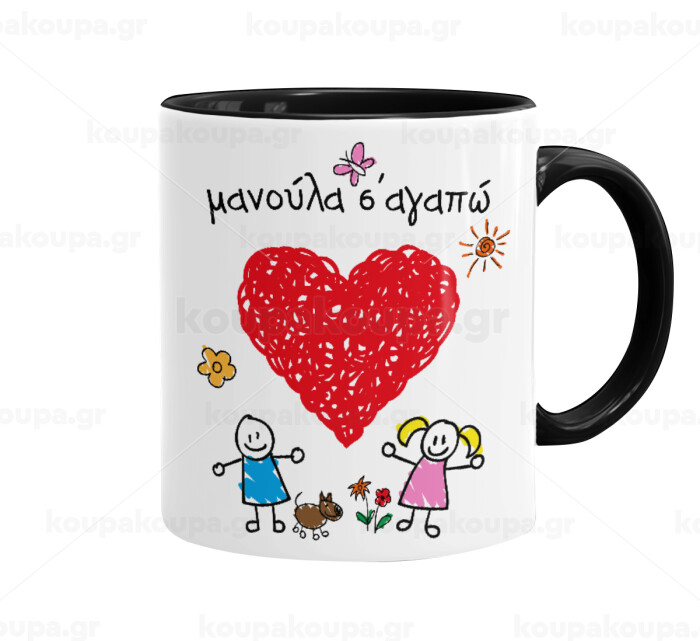 Μανούλα σ'αγαπώ!, Κούπα χρωματιστή μαύρη, κεραμική, 330ml