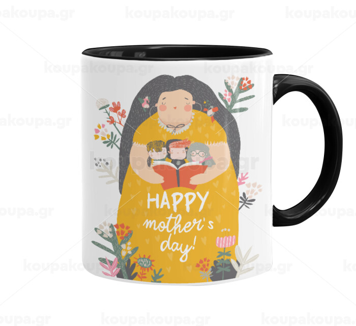 Cute mother reading book, happy mothers day, Κούπα χρωματιστή μαύρη, κεραμική, 330ml