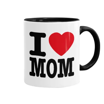 I LOVE MOM, Κούπα χρωματιστή μαύρη, κεραμική, 330ml