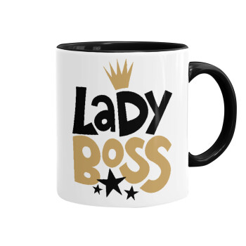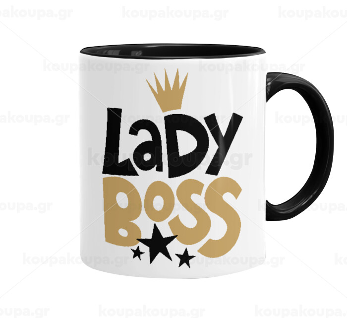 Lady Boss, Κούπα χρωματιστή μαύρη, κεραμική, 330ml