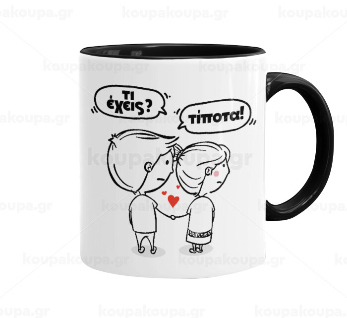 Τι έχεις? Τίποτα!, Κούπα χρωματιστή μαύρη, κεραμική, 330ml
