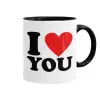 I LOVE YOU, Κούπα χρωματιστή μαύρη, κεραμική, 330ml