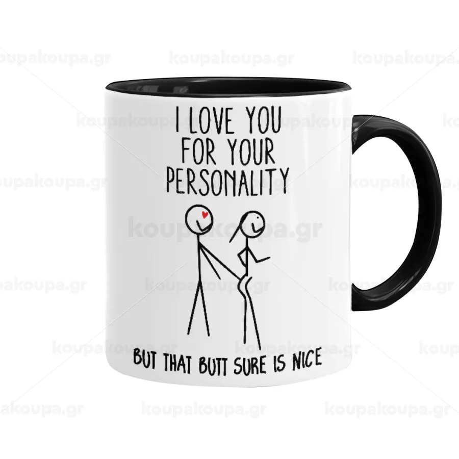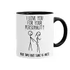 I Love you for your personality, Κούπα χρωματιστή μαύρη, κεραμική, 330ml