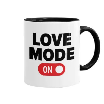 LOVE MODE ON, Κούπα χρωματιστή μαύρη, κεραμική, 330ml