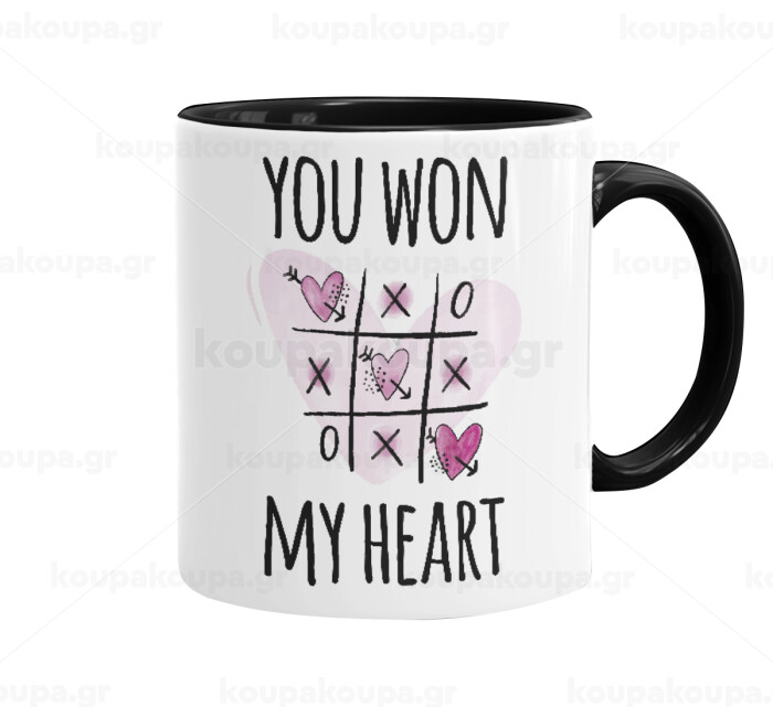 You won my heart, Κούπα χρωματιστή μαύρη, κεραμική, 330ml