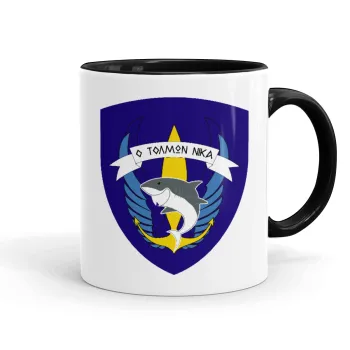 Ο τολμών νικά, καρχαρίας, Κούπα χρωματιστή μαύρη, κεραμική, 330ml