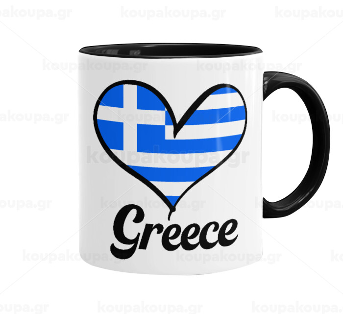 Greece flag, Κούπα χρωματιστή μαύρη, κεραμική, 330ml