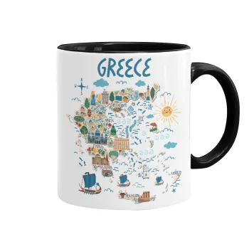 Χάρτης Ελλάδος, Κούπα χρωματιστή μαύρη, κεραμική, 330ml