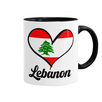 Lebanon flag, Κούπα χρωματιστή μαύρη, κεραμική, 330ml