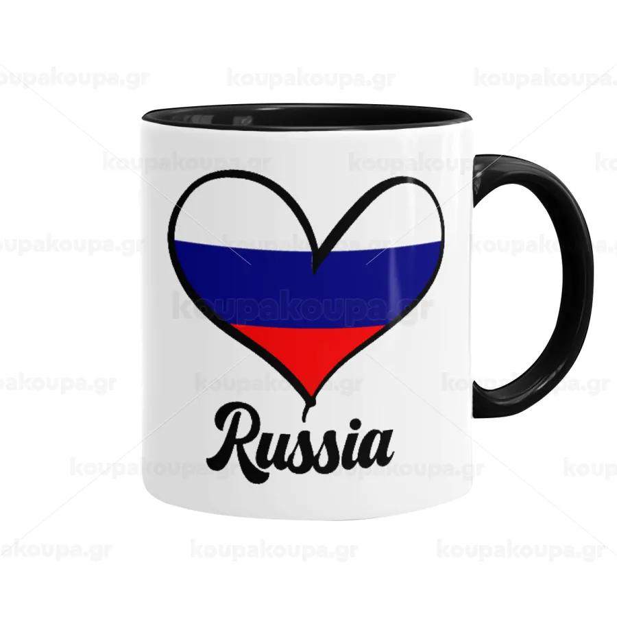 Russia flag, Κούπα χρωματιστή μαύρη, κεραμική, 330ml