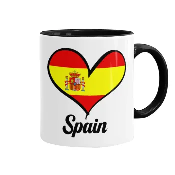 Spain flag, Κούπα χρωματιστή μαύρη, κεραμική, 330ml