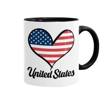 USA flag, Κούπα χρωματιστή μαύρη, κεραμική, 330ml
