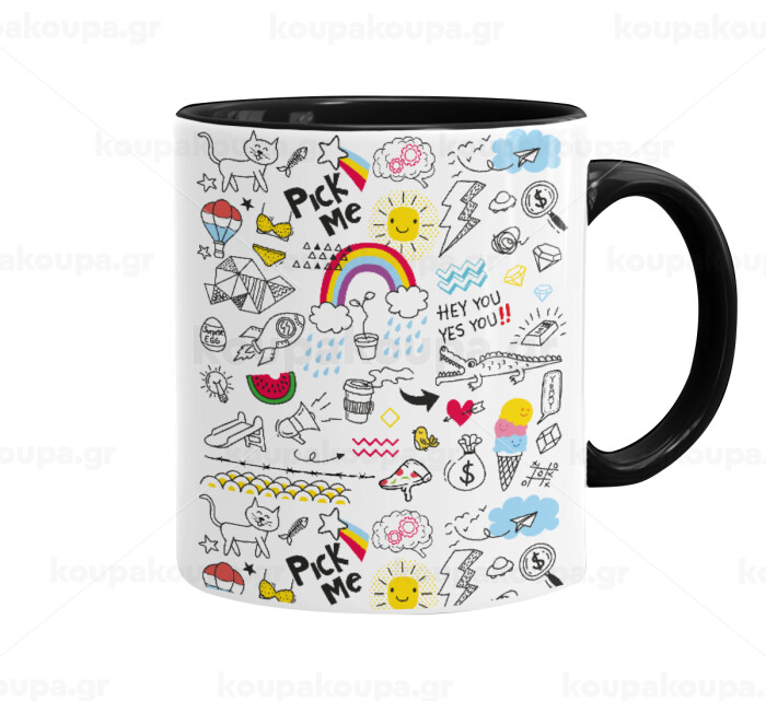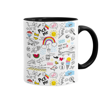 Doodle kids, Κούπα χρωματιστή μαύρη, κεραμική, 330ml