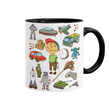 Toys Boy, Κούπα χρωματιστή μαύρη, κεραμική, 330ml