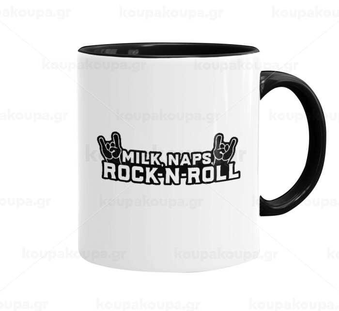 Milk, Naps, Rock N Roll, Κούπα χρωματιστή μαύρη, κεραμική, 330ml