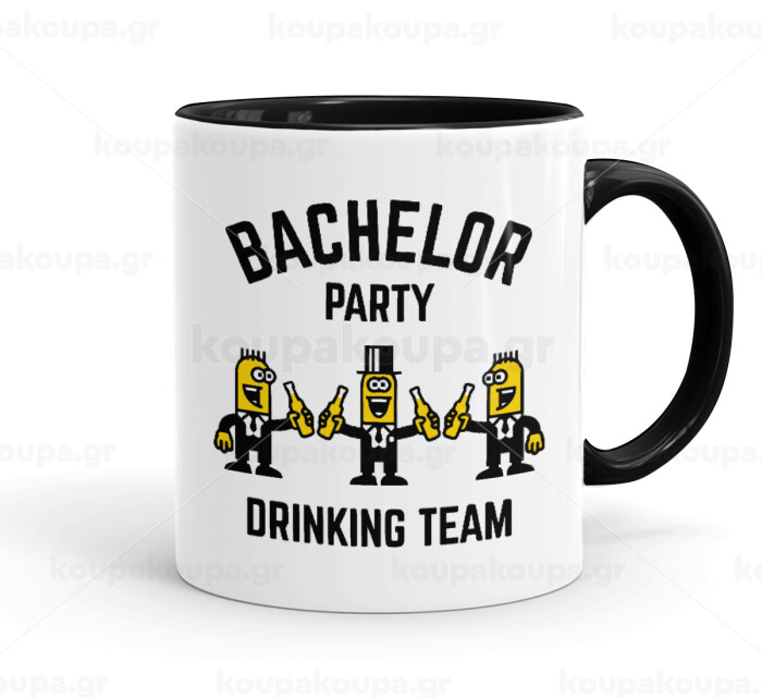 Bachelor Party Drinking Team, Κούπα χρωματιστή μαύρη, κεραμική, 330ml