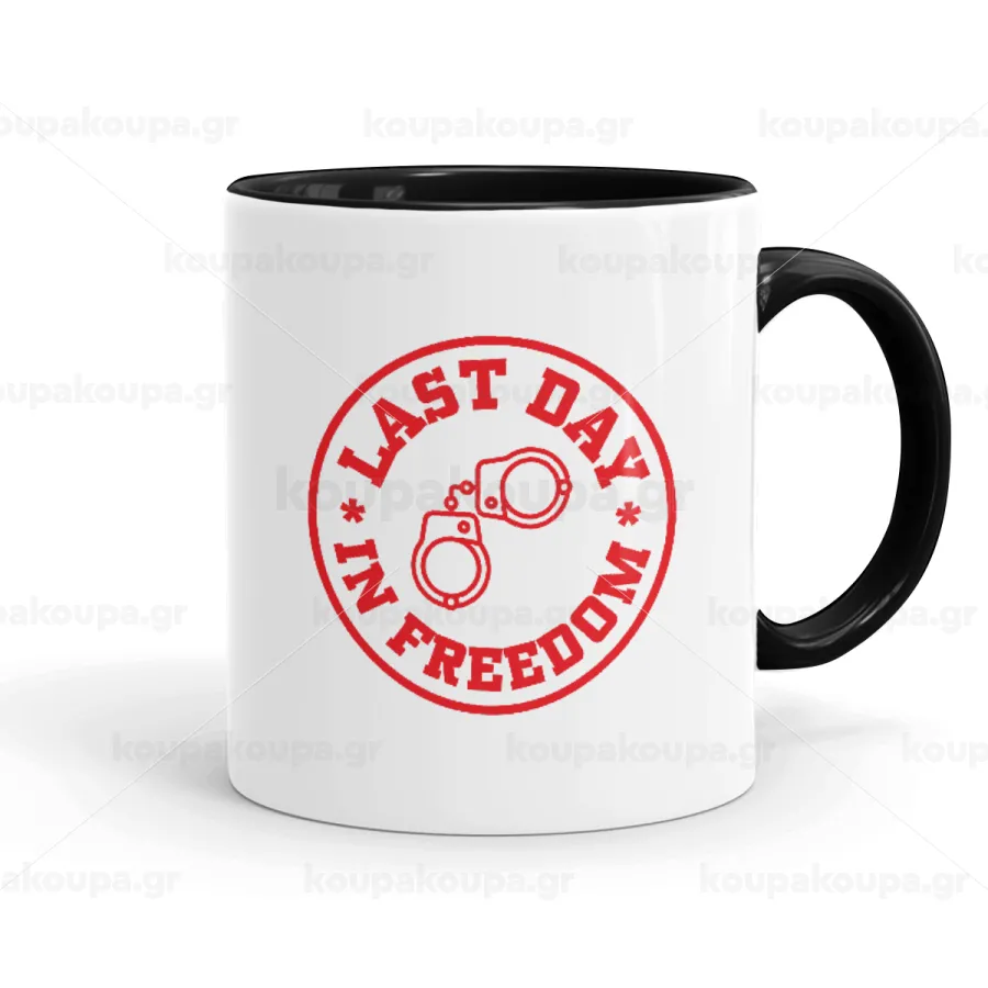 Last day freedom, Κούπα χρωματιστή μαύρη, κεραμική, 330ml