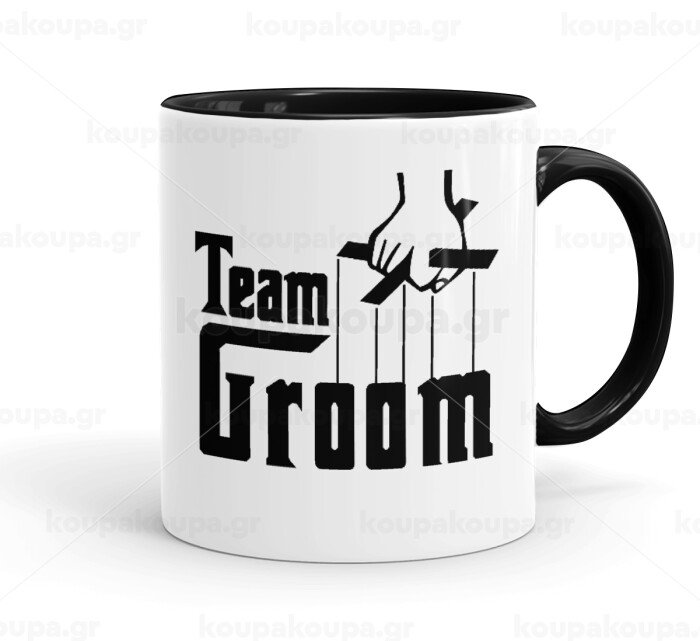 Team Groom, Κούπα χρωματιστή μαύρη, κεραμική, 330ml