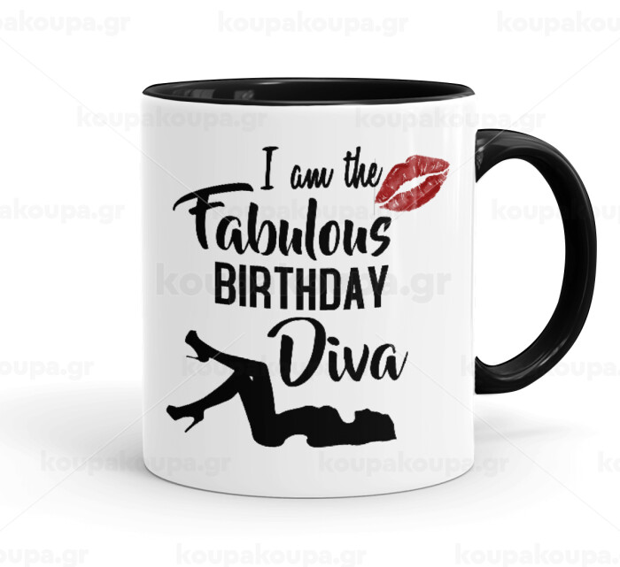 I am the fabulous Birthday Diva, Κούπα χρωματιστή μαύρη, κεραμική, 330ml