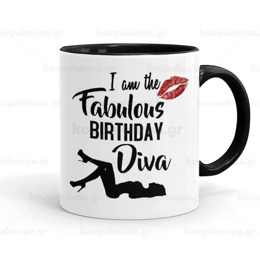 I am the fabulous Birthday Diva, Κούπα χρωματιστή μαύρη, κεραμική, 330ml