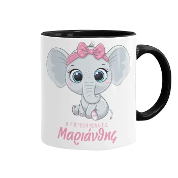 Η νονά μου, ελεφαντάκι ροζ, Κούπα χρωματιστή μαύρη, κεραμική, 330ml