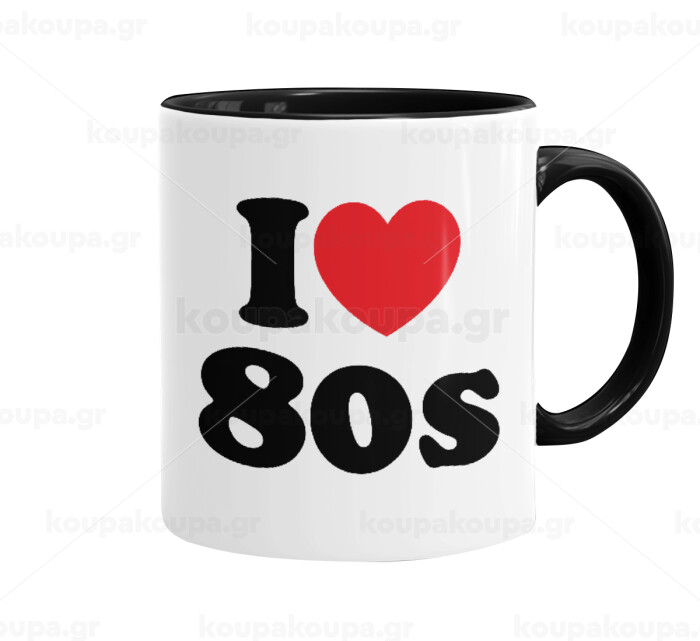 I Love 80s, Κούπα χρωματιστή μαύρη, κεραμική, 330ml