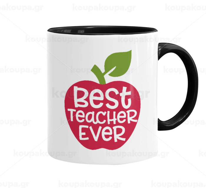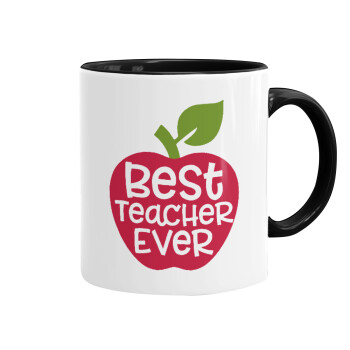 best teacher ever, apple!, Κούπα χρωματιστή μαύρη, κεραμική, 330ml