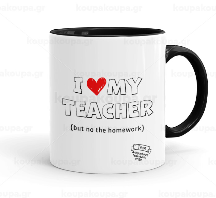 i love my teacher but no the homework outline, Κούπα χρωματιστή μαύρη, κεραμική, 330ml