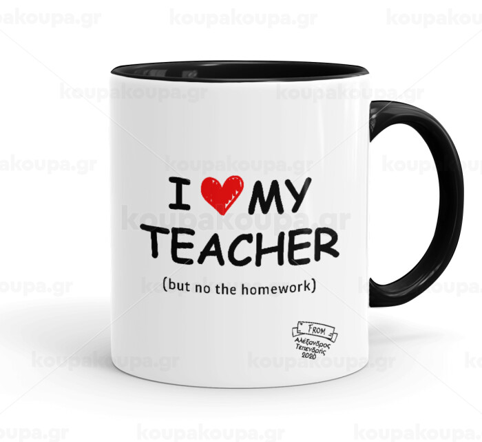 i love my teacher but no the homework, Κούπα χρωματιστή μαύρη, κεραμική, 330ml