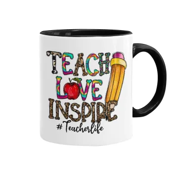 Teach, Love, Inspire, Κούπα χρωματιστή μαύρη, κεραμική, 330ml