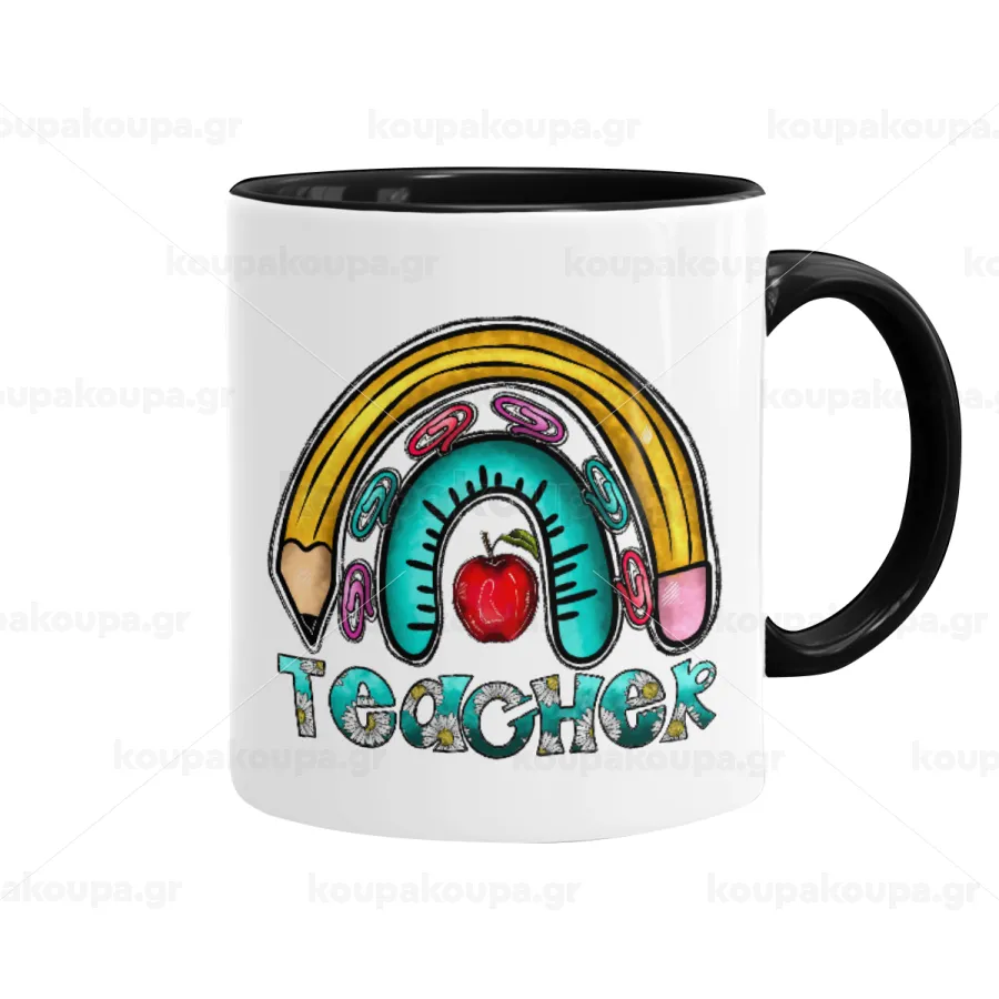 Teacher, Κούπα χρωματιστή μαύρη, κεραμική, 330ml