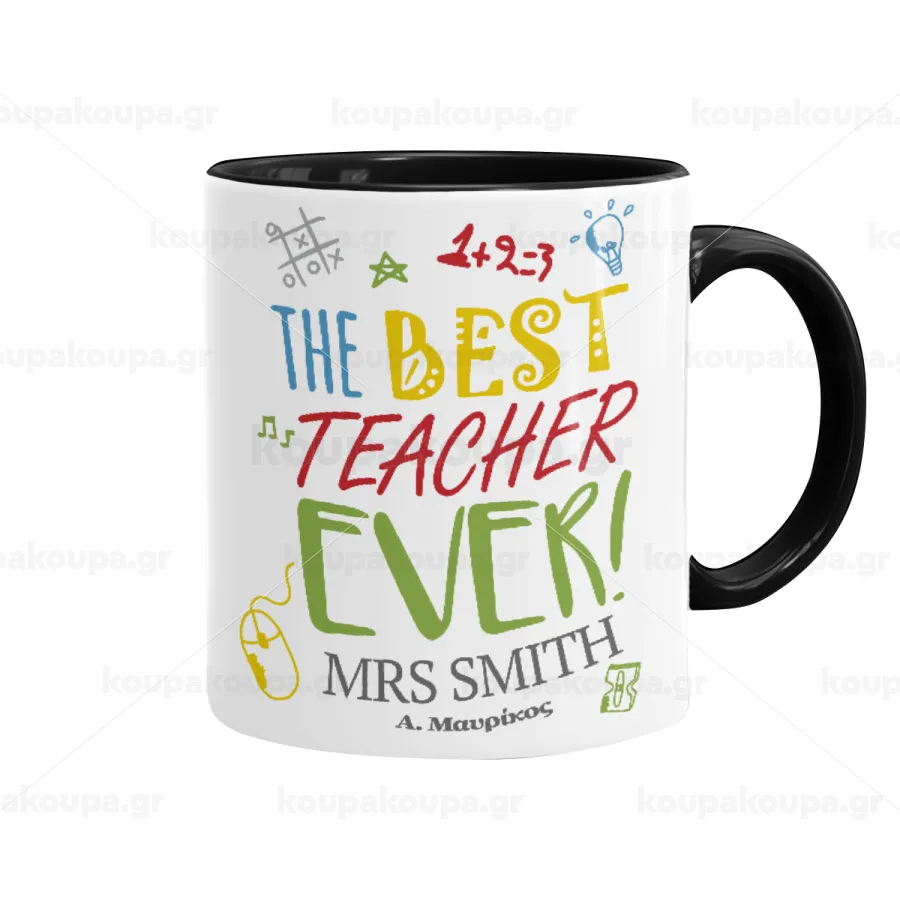 The best teacher ever!, Κούπα χρωματιστή μαύρη, κεραμική, 330ml