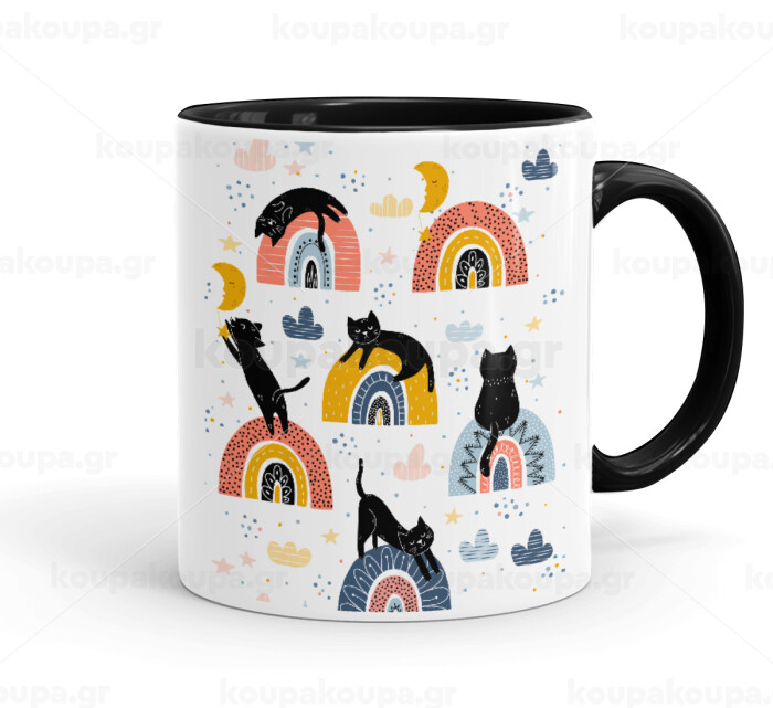Γατούλες, Κούπα χρωματιστή μαύρη, κεραμική, 330ml