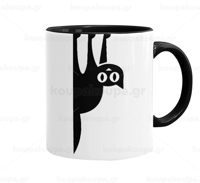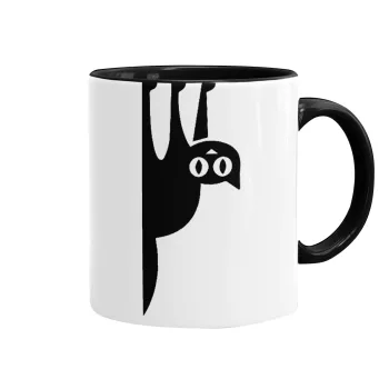 Cat upside down, Κούπα χρωματιστή μαύρη, κεραμική, 330ml